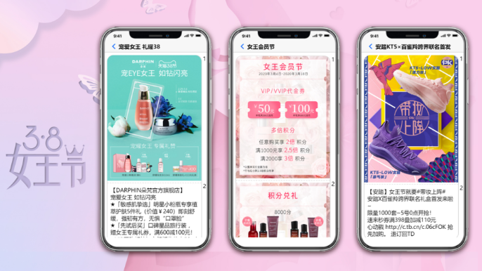 在女性强大购买力的有助于下,电商品牌需深入洞察女性消费心里,有助于“她经济”营销模式的多样化。针对女性特有的3.8妇女节,不再是单纯的节日,品牌纷纷运用“女王节”、“女神节”等容易被营销的名词,包装成一个大型的购物盛宴。相比于妇女节,移动互联网浪潮下的女神节突显了女性的独特性,更容易被社交媒体分享和营销,它抓住了女性更注重情感化的思维特点,加强品牌与用户沟通研讨的渠道。