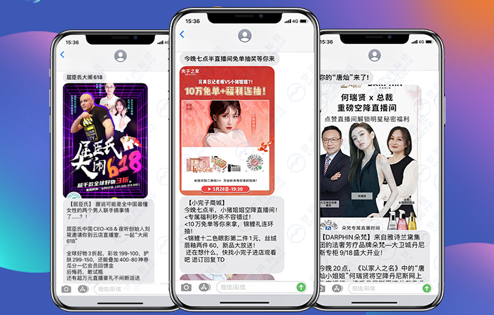 结合时下火热的直播带货模式,PA真人视讯富信融合视频、语音、高清图片、文字、二维码、链接等多种媒体元素的展示形式,以及基于手机收件箱的强触达性,使其成为5G时代的新媒体营销工具,在企业直播的多个应用场景给予了创新解决方案,在直播预告、直播种草、开播提醒、新品发售、粉丝互动等场景发力。顺利获得视频化的场景应用转化消费,强化用户和品牌的记忆,在促销优惠的场景下,挖掘用户的消费需求,刺激种草。再结合富信30秒的视频内容介绍,拉近品牌与消费者的互动链接,实现对消费者的精准拔草。